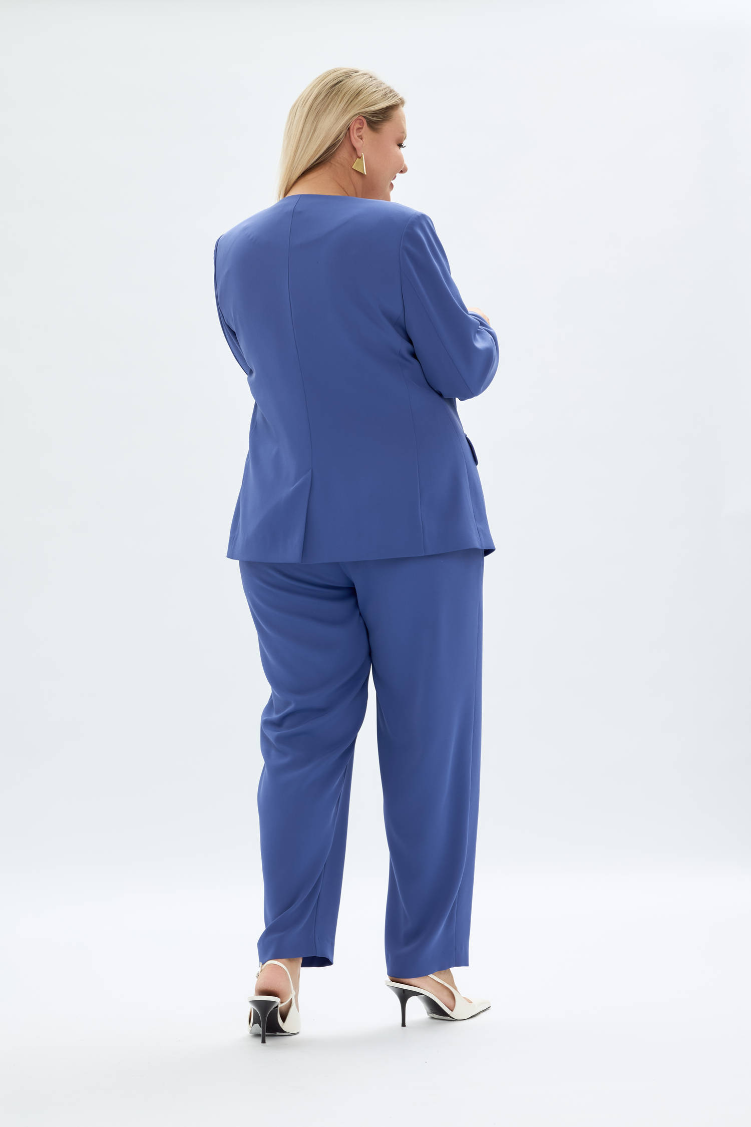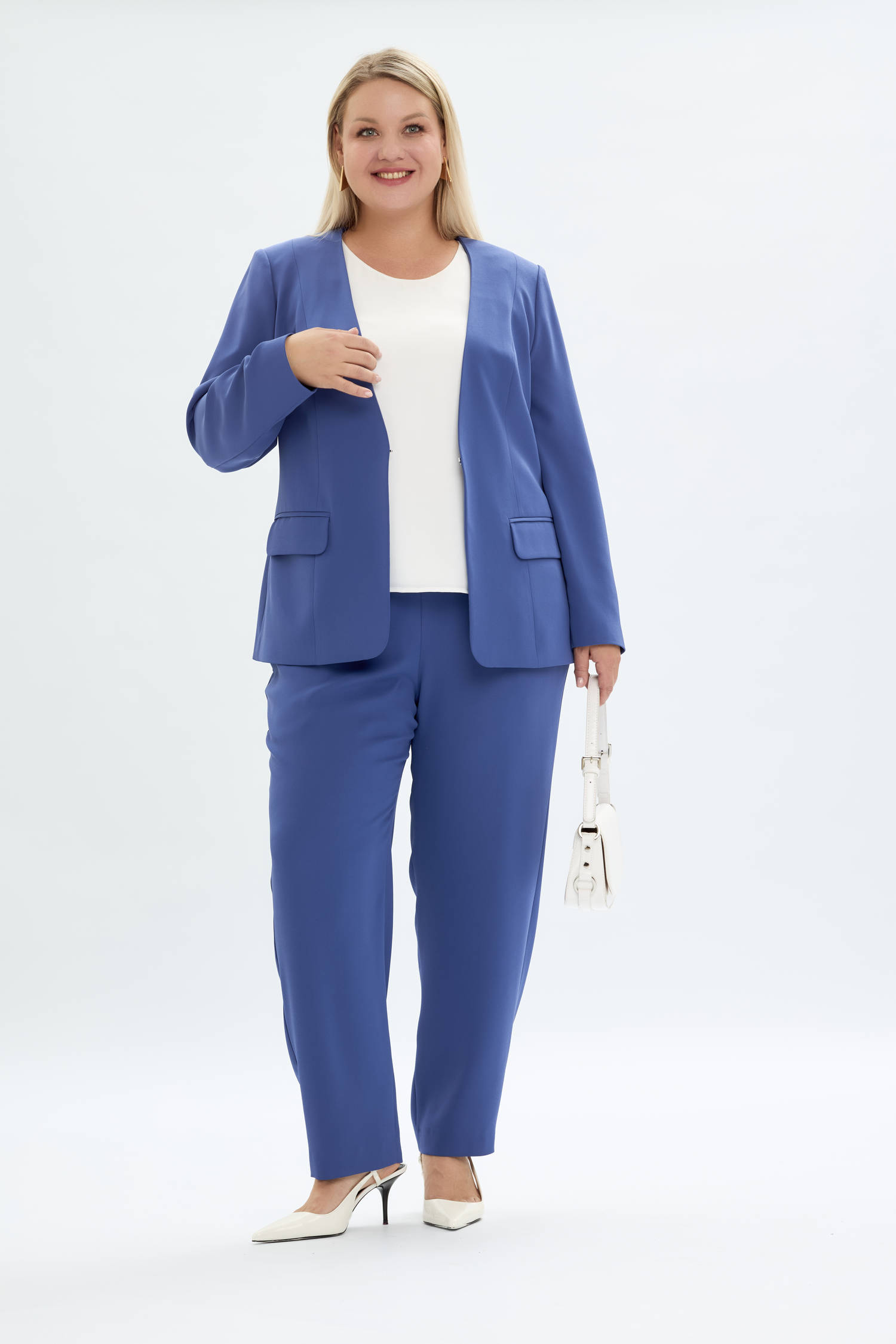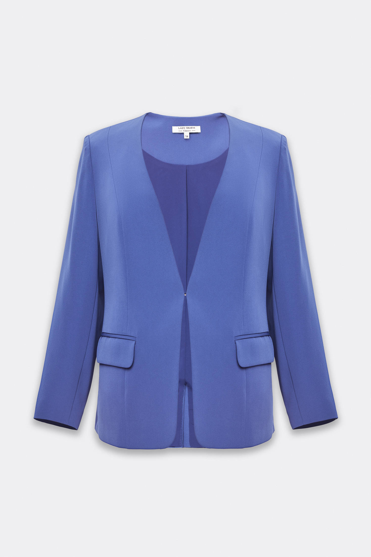 Жакет прямого силуэта с V-образным вырезом без воротника. Втачной двухшовный рукав подчеркнет силуэт. На переде рельефные швы и карманы с клапаном, застежка на один крючок. Сочетайте с брюками в тон из этой же ткани для создания яркого делового образа.